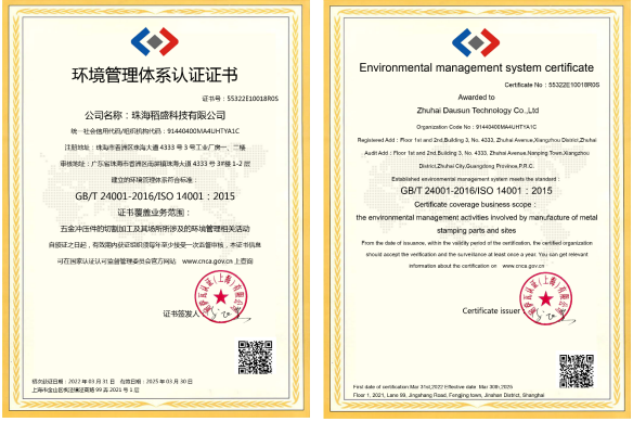 喜讯! 珠海稻盛科技有限公司于3月底顺利通过了ISO14001:2015环境管理体系认证。珠海稻盛科技有限公司是一家年轻、专业的精密五金模具设计、制造、五金冲压、喷涂、丝印、产品装配于一体的综合性生产厂家。此次环境管理体系认证证书的通过,…...