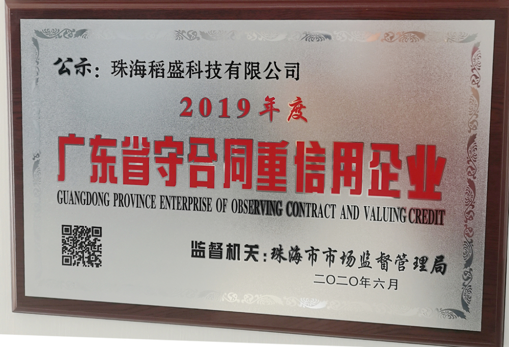 珠海市政府认定的“守信企业”证书